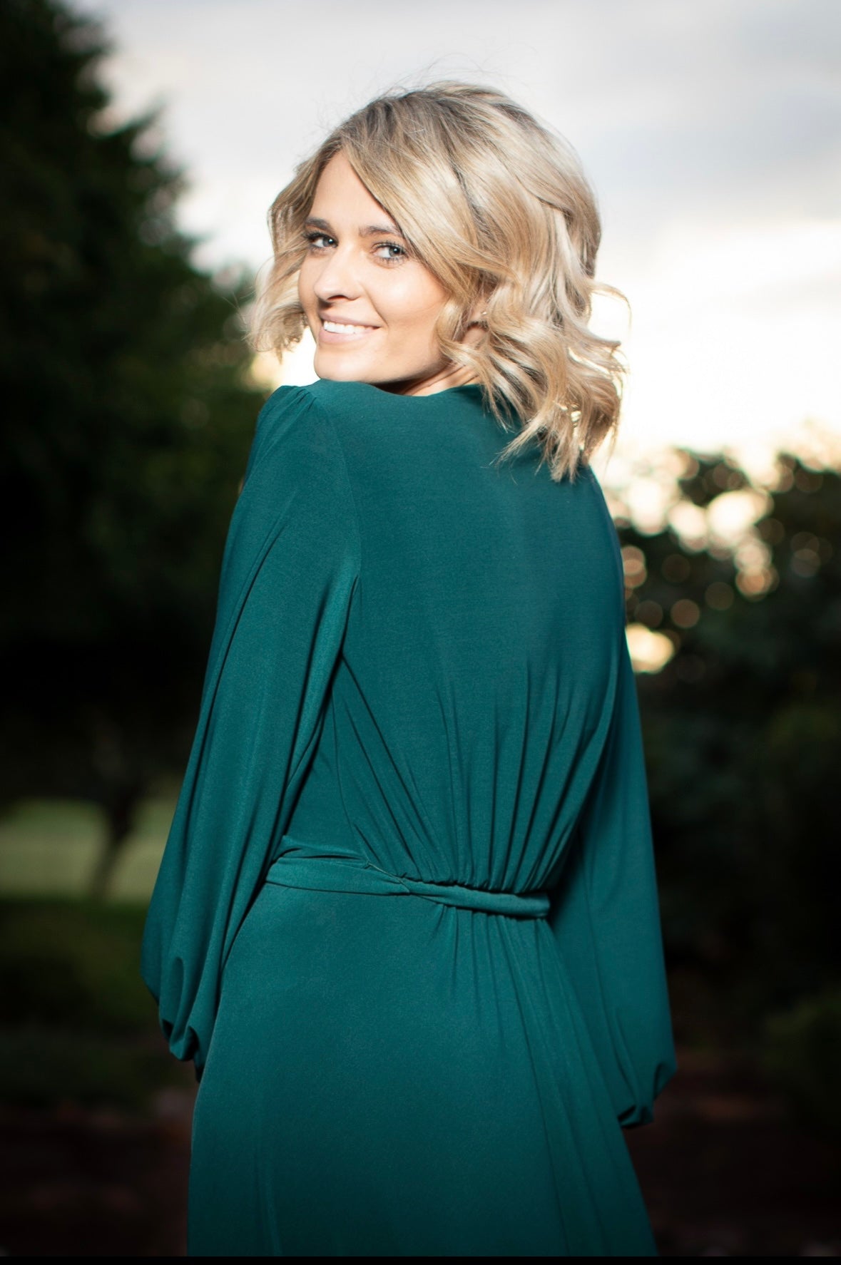 Features a cross over neckline and elastic waist band and long cuff sleeves. Top lenght is 36cm.