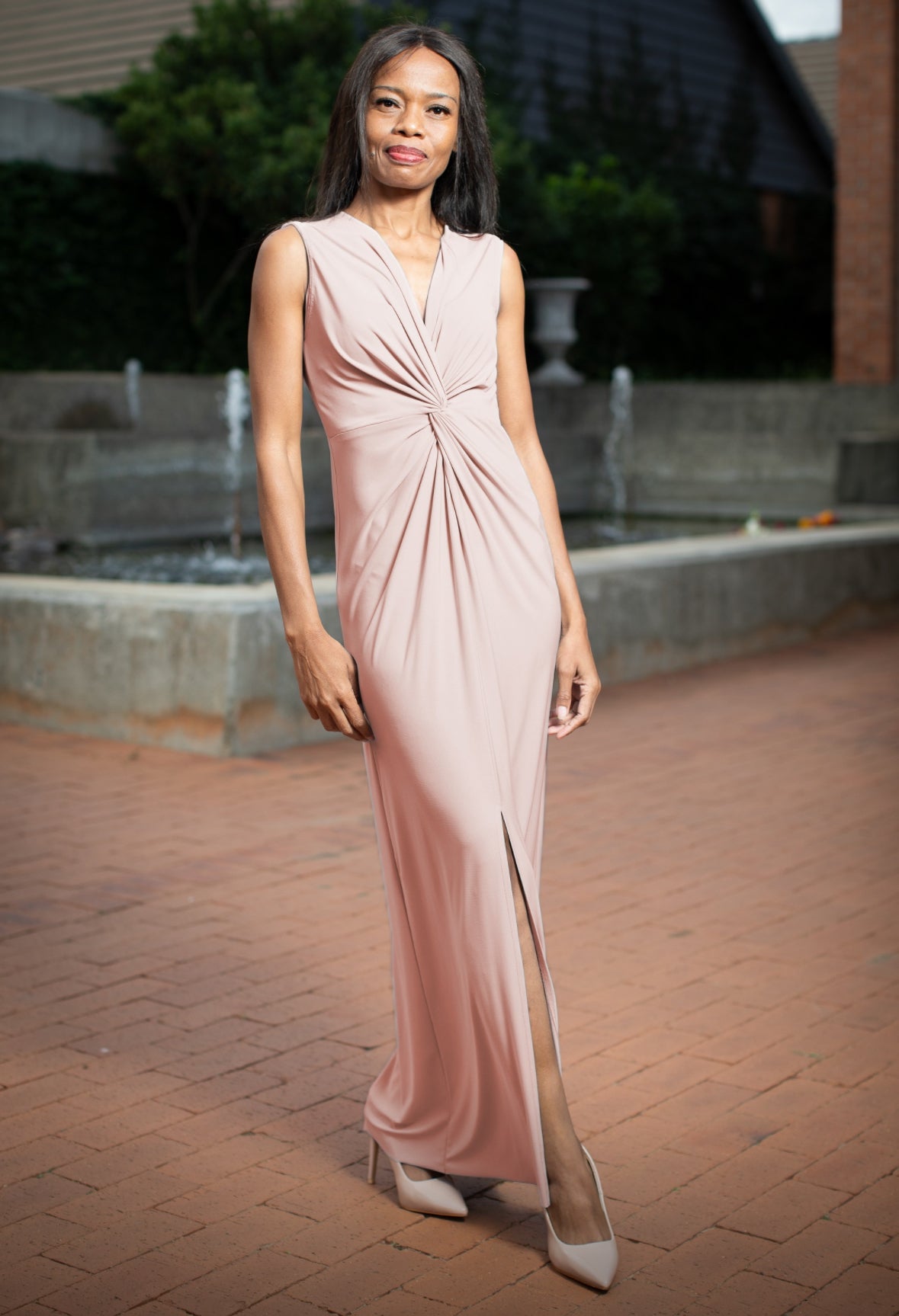 This is the perfect dress for versatility. Featuring a knot-detail in the front and a low cut neckline, making it elegant and sexy
