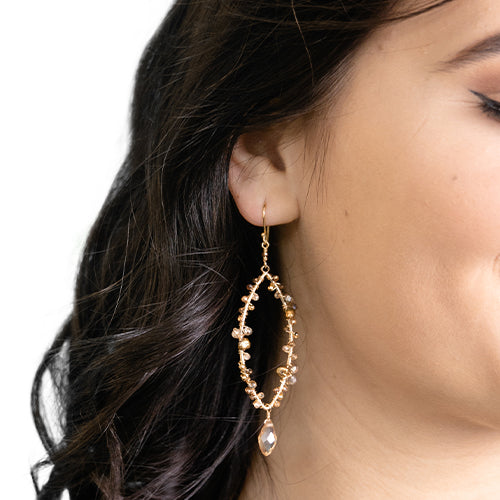 Gold plated spear wrapped with multiple champagne shade crystals and champagne drop