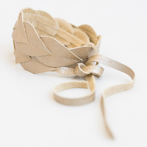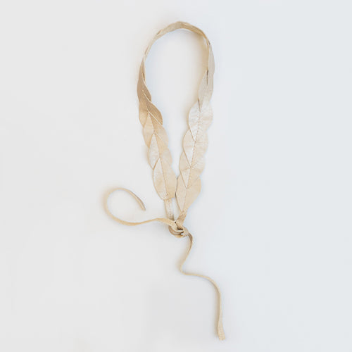 This eye-catching leather belt features a leaf design at the front and ties at the back.