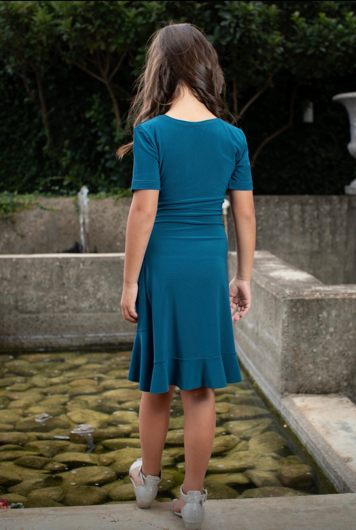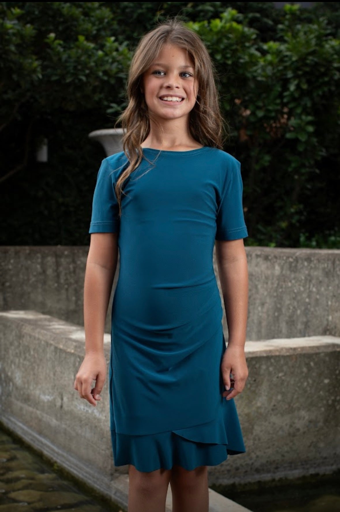 This dress will make your little girl look extra cute. It features a round neckline with a pleated design at the waist and a frill seam for added detail.