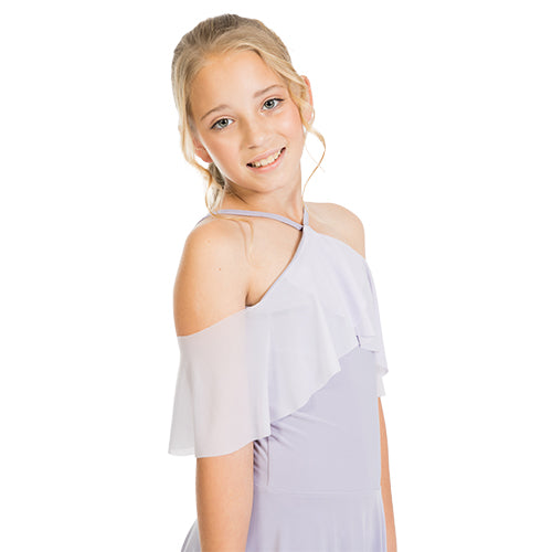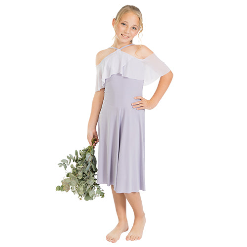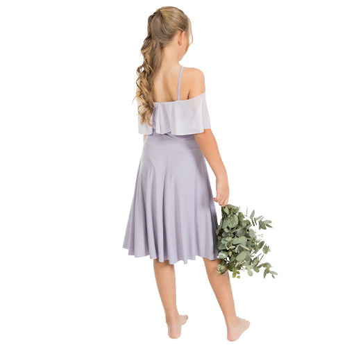 This dress is a lovely choice for your flower girl. Featuring a halter neckline with a frill, fitted shape and flare skirt.