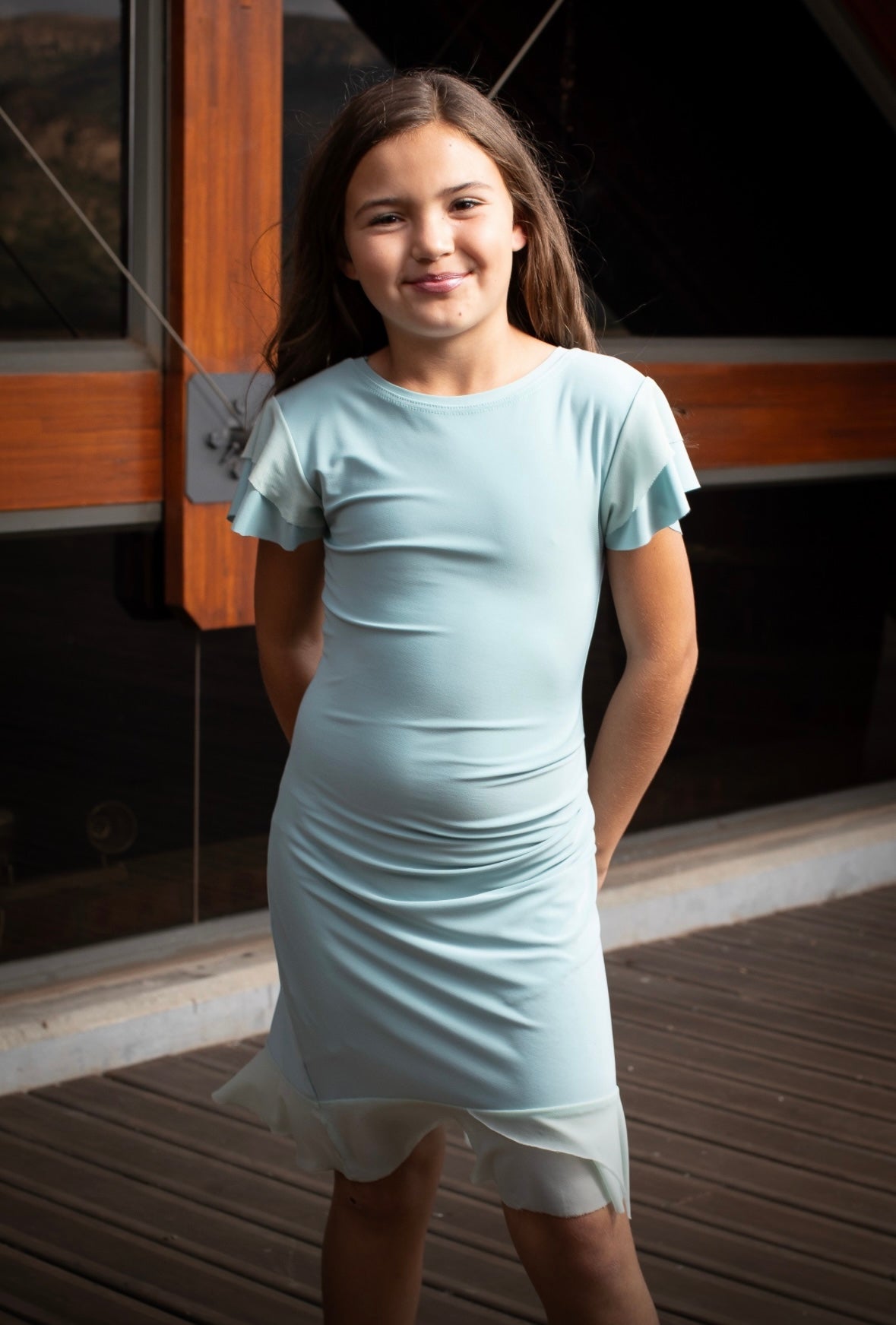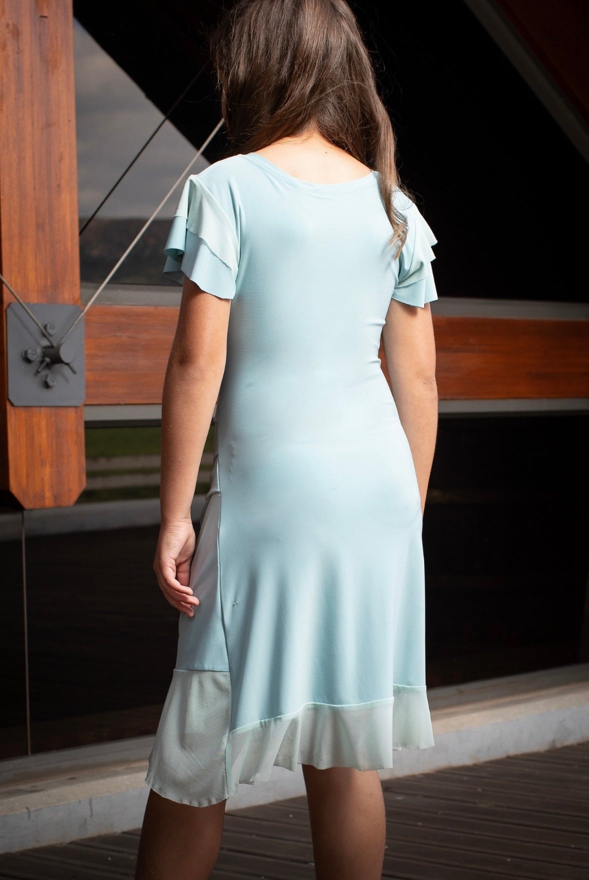 This dress makes your little girl look extra cute. It’s mesh sleeves, with a pleated design and features a mesh seam detail.
