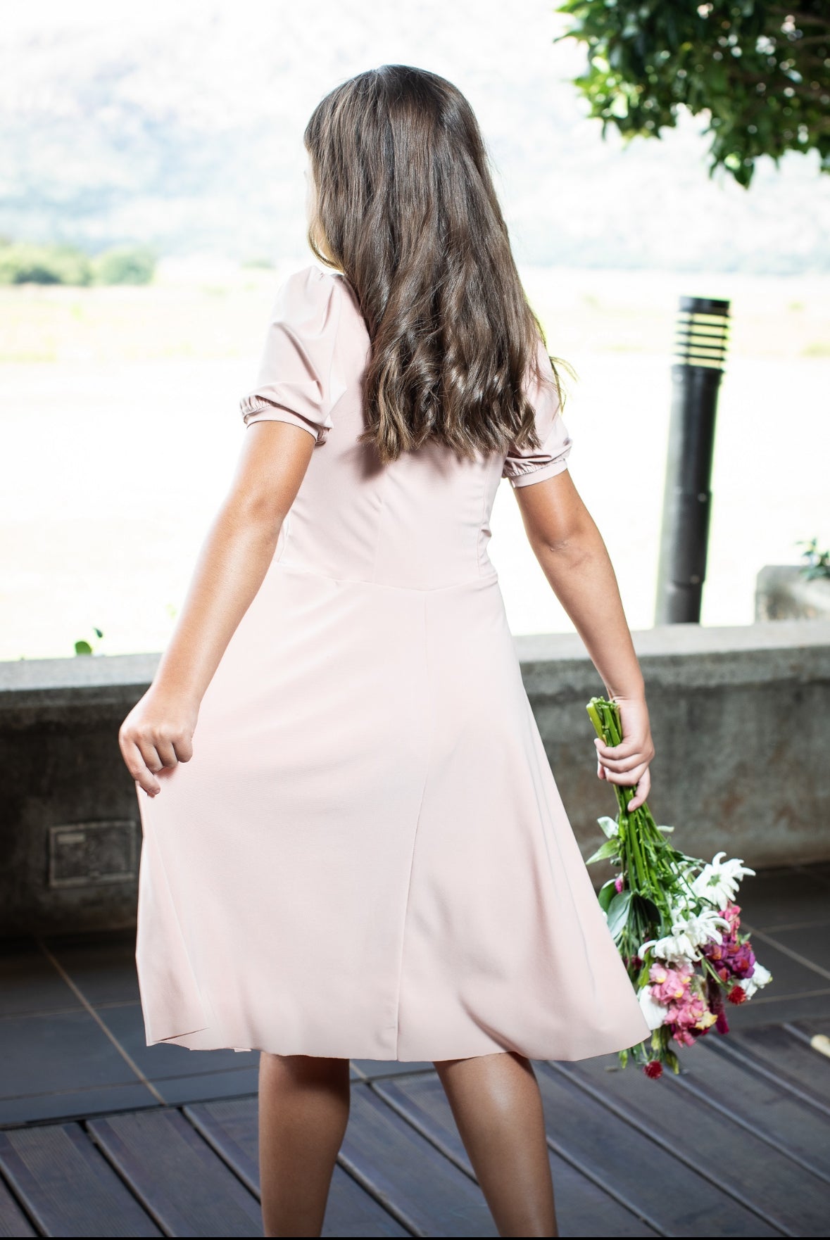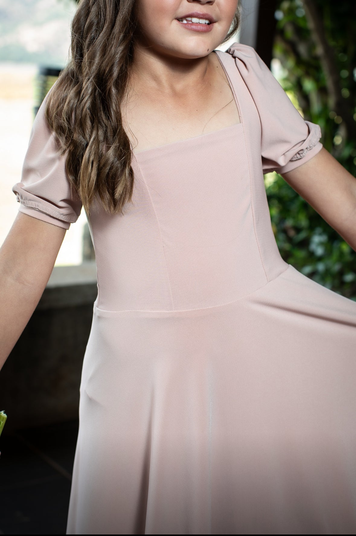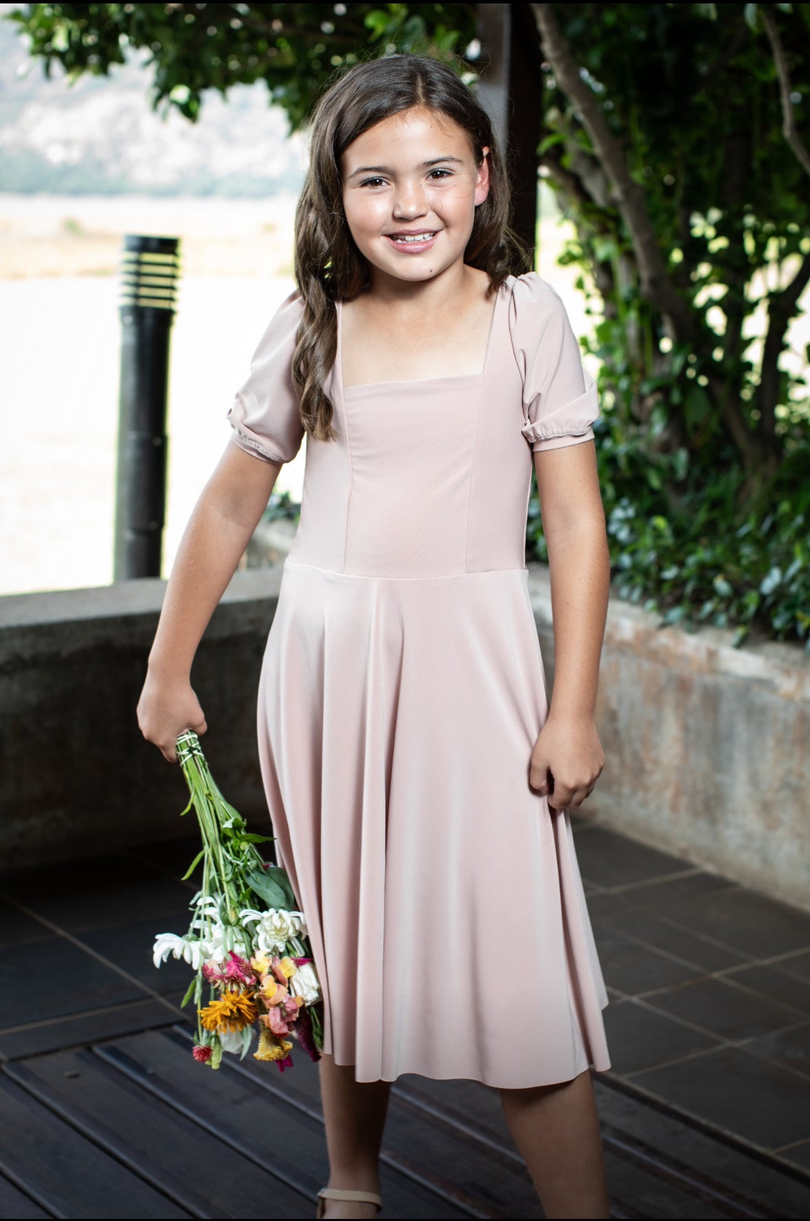 This dress feature a boat neckline with puff sleeves, finished off with a flare skirt. Please note that our sizing is not specific, as the fabric stretches a lot.