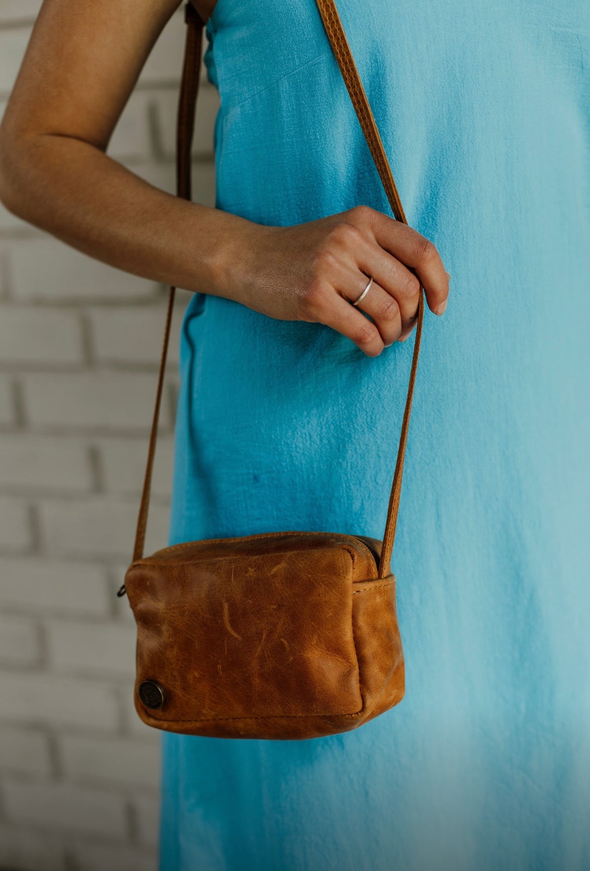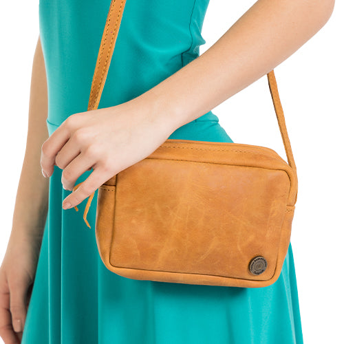 Make a minimal statement with The Maggie cross-body bag. Designed with a spacious inner for essentials, such as a phone and purse, this bag is made form genuine leather and has an adjustable shoulder strap.