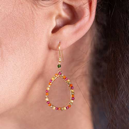 Small Teardrop earrings wrapped with water tourmaline & Crystal.