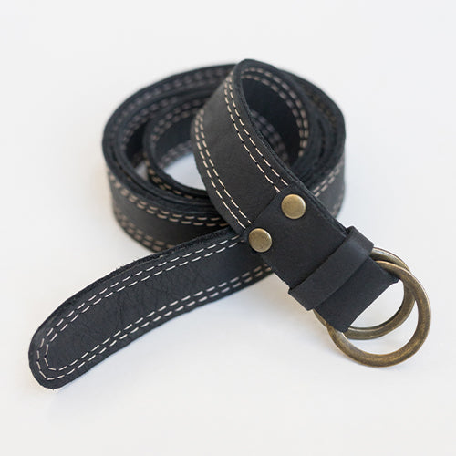 Designed to sit on the waist,this belt is a simple way to add definition to your silhoutte.Made with soft seude leather and two rings.