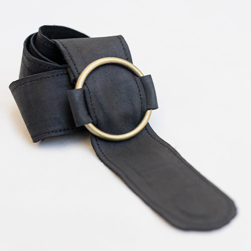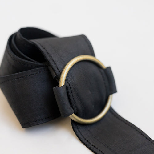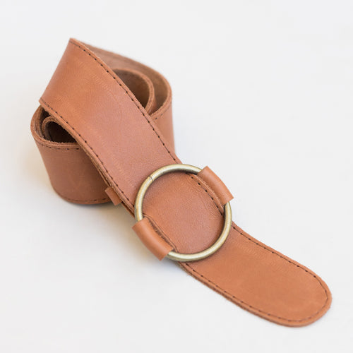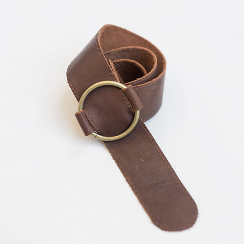 Perfect for pairing with a denim or dress, this belt is crafted in leather and features a brass ring buckle.
