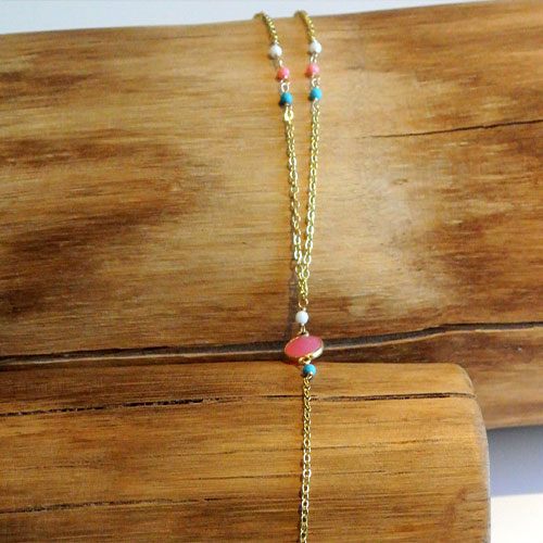 T-BarNecklace with a Ruby &Turquoise Bezel