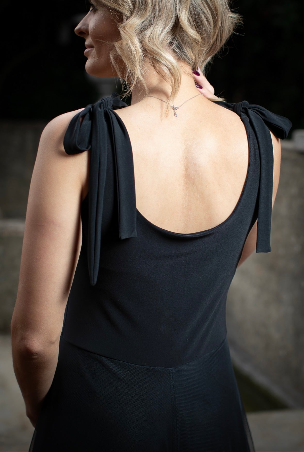 Features a self tie shoulder staps and a round neckline. Top Length 36cm.