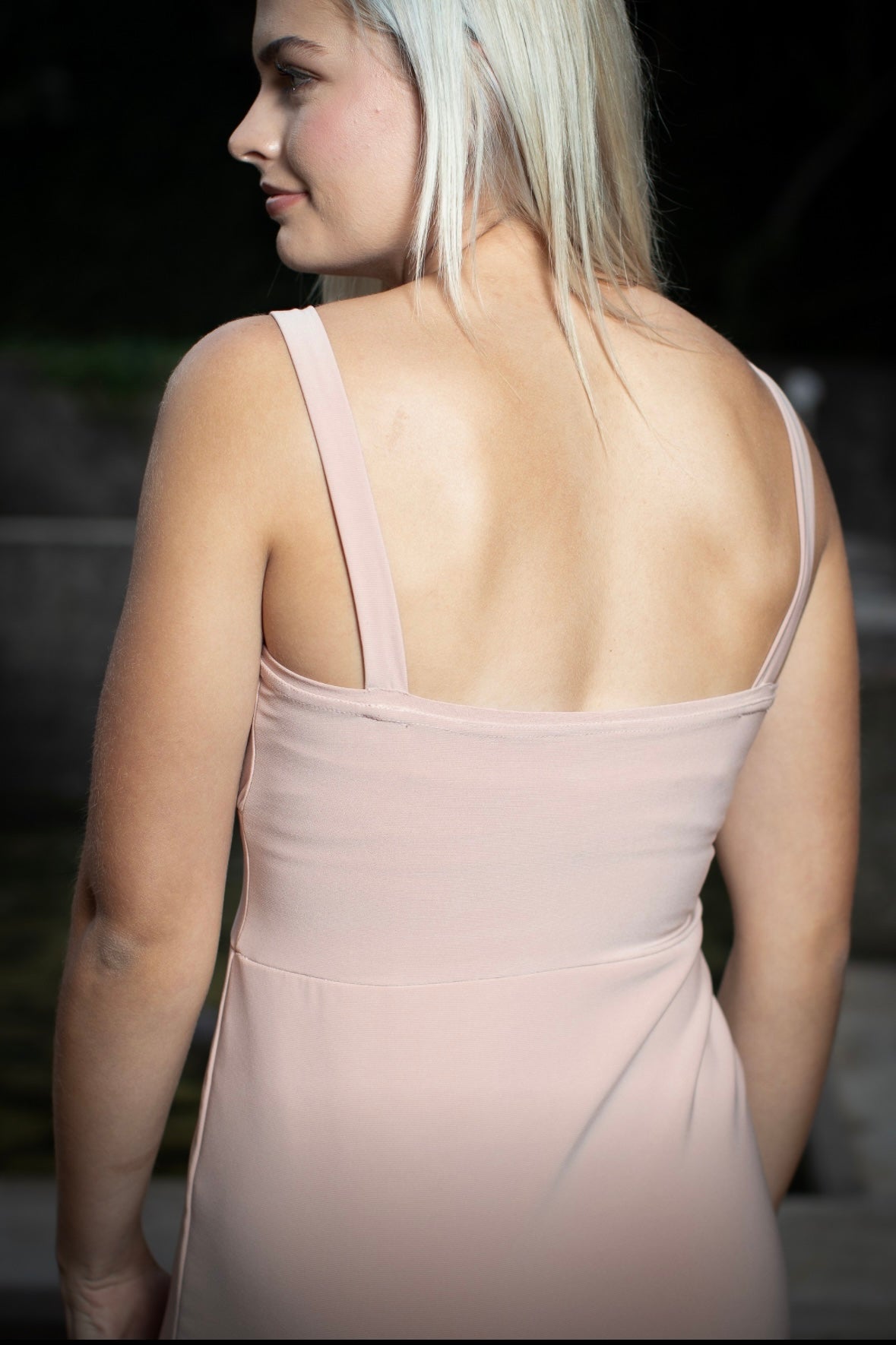 Features a low v-neckline with a waistband, no sleeves. Top length 36cm.
